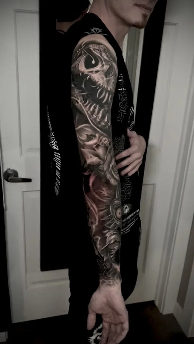 "If you looked up in the dictionary the word “meticulous”, then Doug’s tattoo work would be set as an example next to it. Doug is the first tattoo artist that i can say, with confidence, always doing his best, no matter what kind of day it is. I’ve been going to him for about 5 sessions no over the last year, and i’ve never once had a bad experience with him...His hospitality is great: very easy going, relaxed, welcoming and overall a great, friendly guy. I’m never hesitant to bring up any issues and anytime i have, he was always open and respectful to my concerns. I’ve never once felt uncomfortable for any reason. I am currently in the process of finishing up my arm sleeve and from the start i knew that this was the perfect person to pick to do my first full sleeve. His attention to detail is incredible! Honestly i could go on for days talking about how realistic and breathtaking his art is, but one quote puts it into perspective perfectly: “Art speaks volumes where words are unable to explain.” His art speaks volumes compared to anything else I’ve ever gotten done before by anyone else, and that’s hard to find nowadays! I will be a forever client for Doug!" —REBECCA G