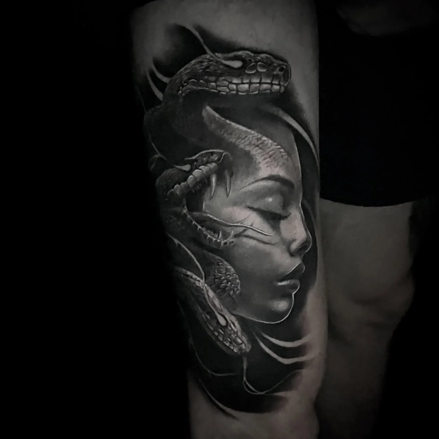 "If you looked up in the dictionary the word “meticulous”, then Doug’s tattoo work would be set as an example next to it. Doug is the first tattoo artist that i can say, with confidence, always doing his best, no matter what kind of day it is. I’ve been going to him for about 5 sessions no over the last year, and i’ve never once had a bad experience with him...His hospitality is great: very easy going, relaxed, welcoming and overall a great, friendly guy. I’m never hesitant to bring up any issues and anytime i have, he was always open and respectful to my concerns. I’ve never once felt uncomfortable for any reason. I am currently in the process of finishing up my arm sleeve and from the start i knew that this was the perfect person to pick to do my first full sleeve. His attention to detail is incredible! Honestly i could go on for days talking about how realistic and breathtaking his art is, but one quote puts it into perspective perfectly: “Art speaks volumes where words are unable to explain.” His art speaks volumes compared to anything else I’ve ever gotten done before by anyone else, and that’s hard to find nowadays! I will be a forever client for Doug!" —REBECCA G