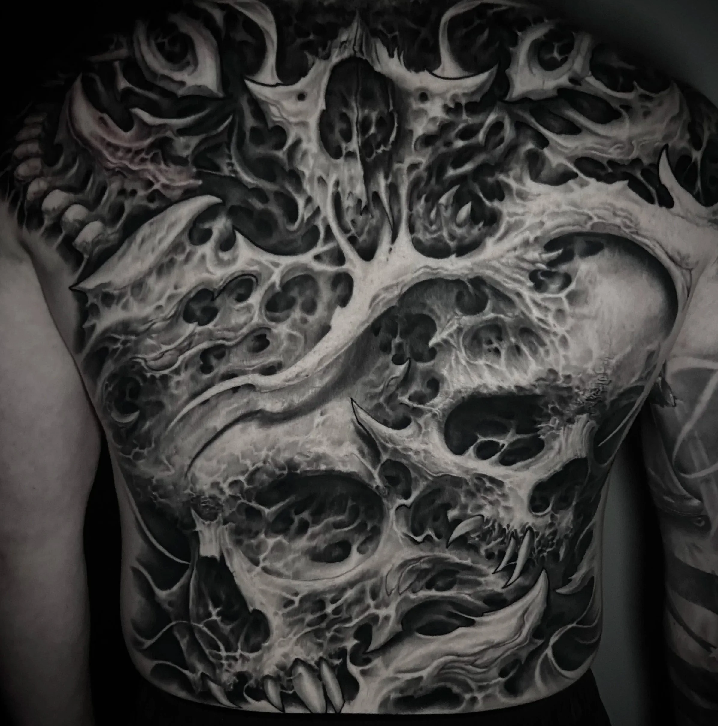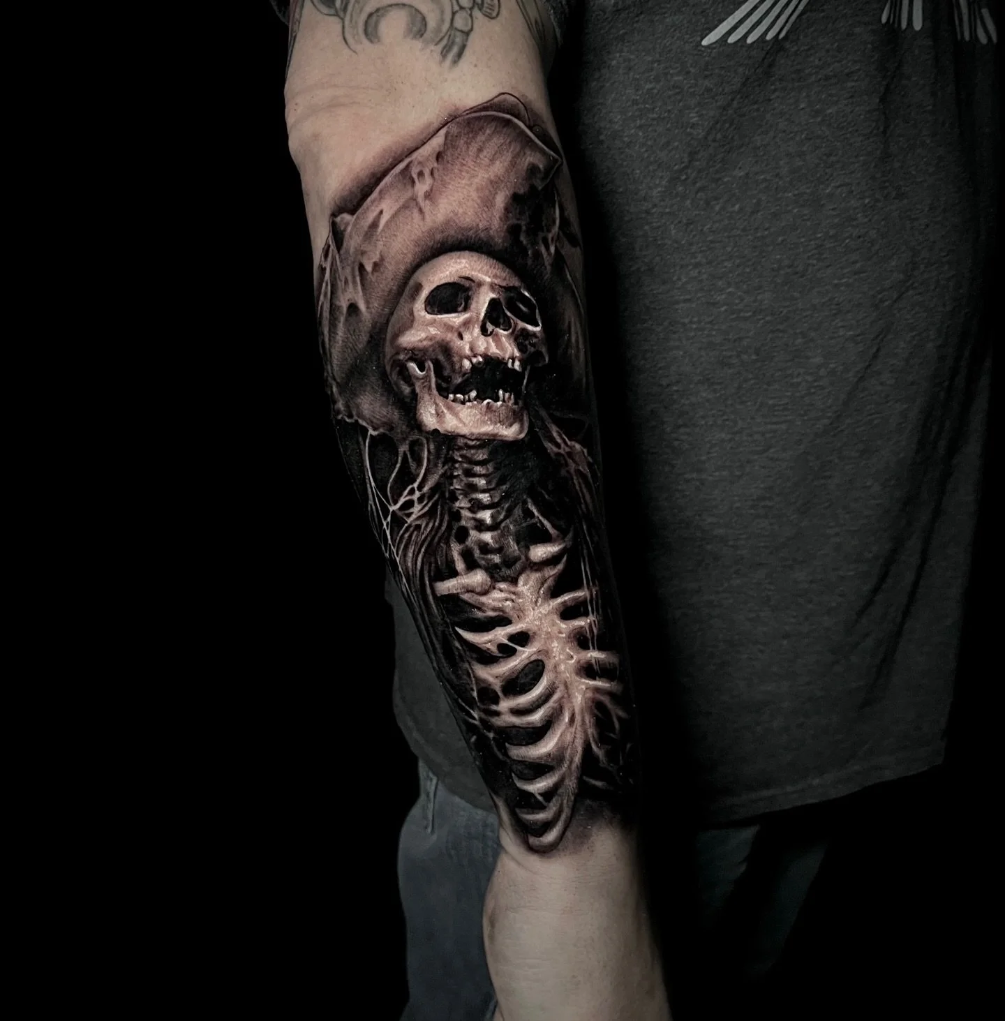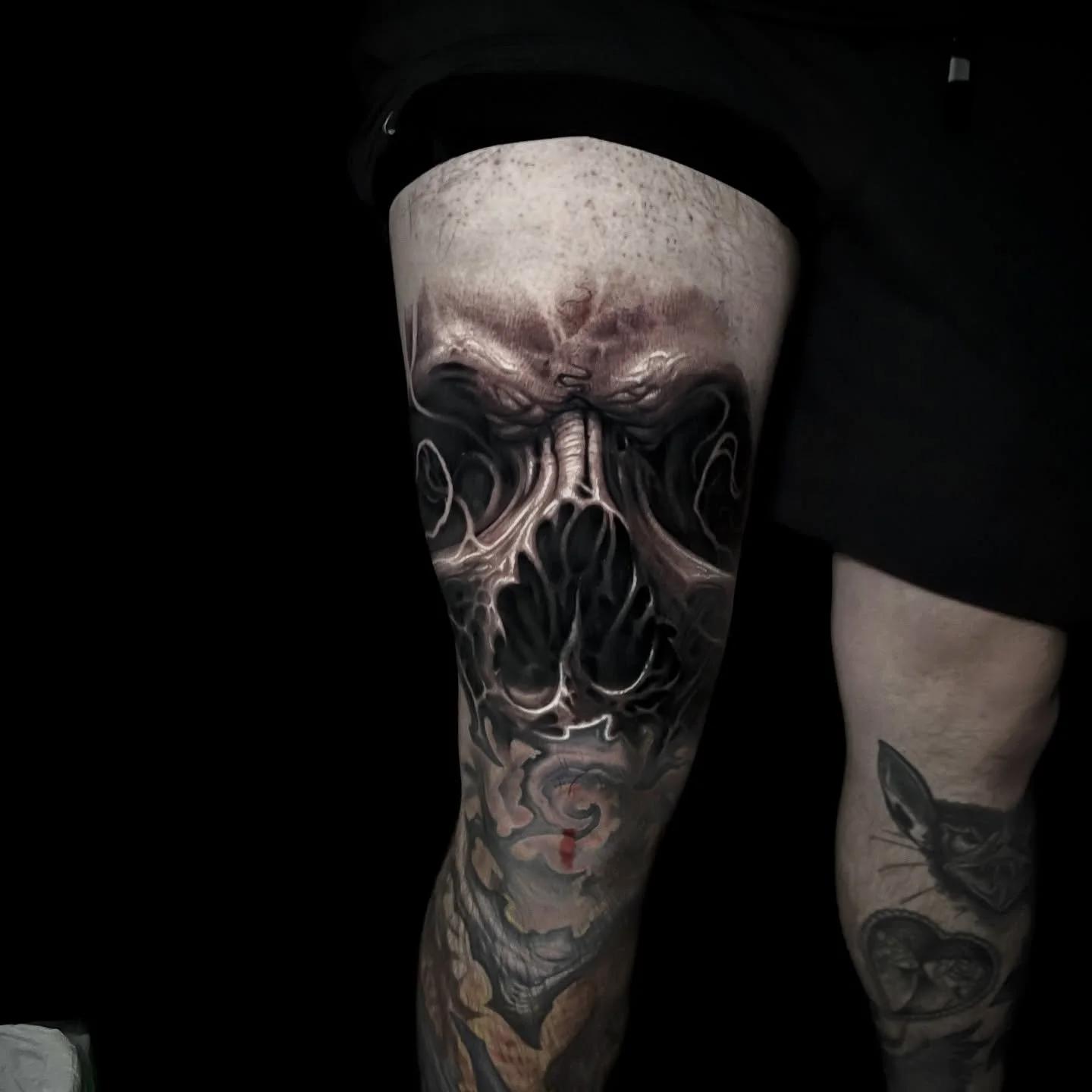 I’ve been tattooing professionally within the Pittsburgh area since 2010 specializing in black and gray tattoos that range from photo realism to biomechanical. I’m very passionate for taking clients’ ideas and turning them into one-of-a-kind tattoos that you won’t see on anybody else. A lot of my inspiration comes from things found in nature like wood grain, or coral, contrasted by flowy features like smoke. The intricate detail and texture found in skulls has captivated me since i was a kid. I also enjoy form-fitting tattoos to the body using the musculature and topography as a guide. Most of my career was spent in shops within the city, learning from some of the best in the industry. I have also had the opportunity to travel around the country working at conventions and doing guest spots. I’ve been tattooing at Salvare Tattoo in Aliquippa since 2020.